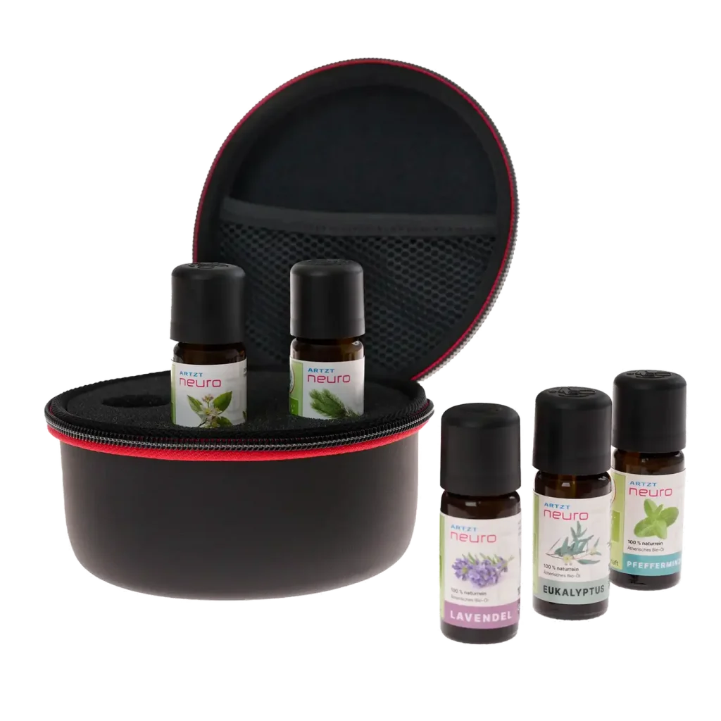 Die ARTZT neuro Ätherischen Öle sind ein Set aus fünf 100 % naturreinen Duftölen in Bio‑Qualität zur gezielten Aktivierung des Geruchssinns und emotionaler Reize. Ideal für neurozentriertes Training, Aromatherapie und Wahrnehmungsübungen – inklusive gepolstertem Etui mit Platz für fünf 10 ml‑Fläschchen.