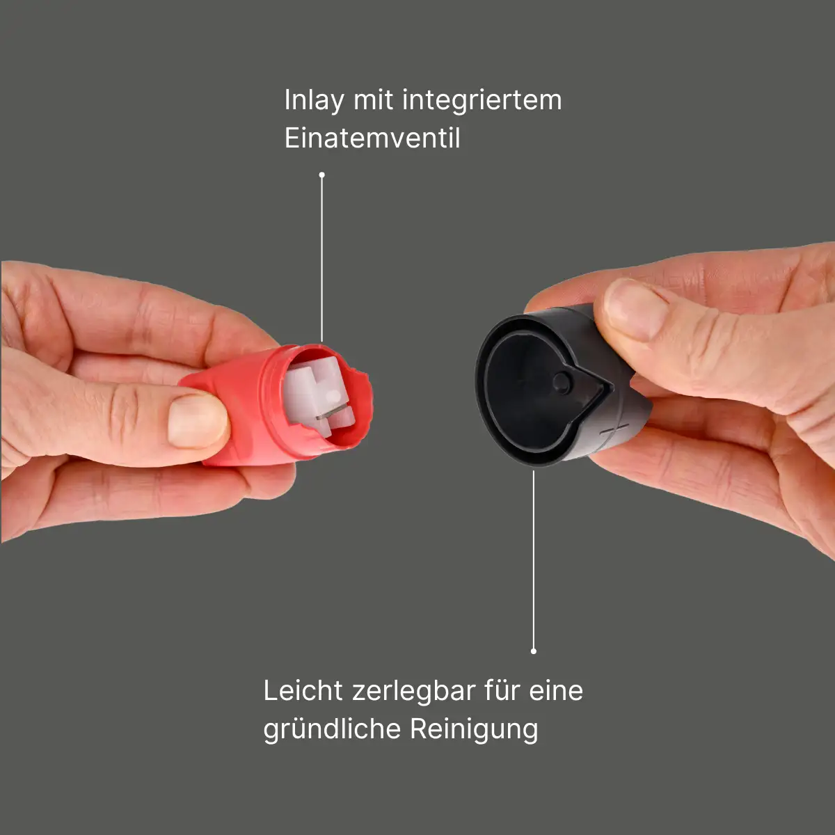 • Gezieltes Atemtraining: Fördert die Aktivierung des Zwerchfells und unterstützt bewusstes, tiefes Ein- und Ausatmen.