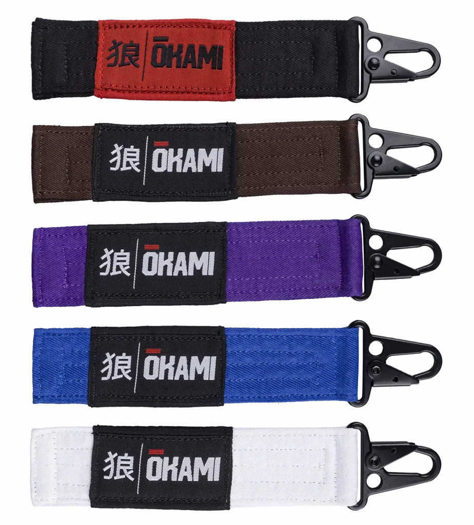 Der OKAMI BJJ Ranked Keychain bringt den Look klassischer BJJ-Gürtel direkt an deinen Schlüsselbund. Stylisch, sportlich und perfekt als kleines Statement – fürs Gym, den Rucksack oder als Geschenk für Teammates. Erhältlich in White, Blue, Purple, Brown und Black.