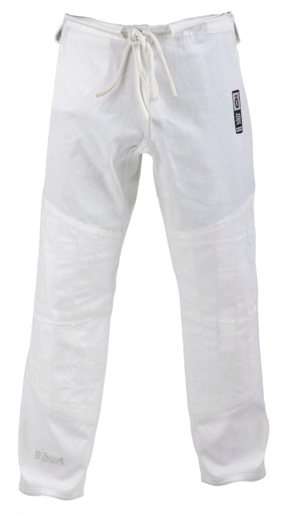 Die Gi-Jacke wird aus Baumwolle in Pearl Weave hergestellt und ist entsprechend leicht und trotzdem extrem reißfest. Die Ärmel und der Rücken der Jacke sind aus einem Stück gefertigt. Alle Stresspunkte sowie der Kragen wurden zusätzlich verstärkt. In Kombination mit der angenehm weichen Pearl-Weave-Webart ergibt das eine strapazierfähigee Gi-Jacke mit hohem Tragekomfort. Der Kniebereich der Hosen aus Twill Cotton ist im Bereich oberhalb der Knie bis zur Mitte des Schienbeines gedoppelt. Der gedoppelte Bereich der Hose wird durch eine innovative schräge Nahtführung zusätzlich verstärkt.