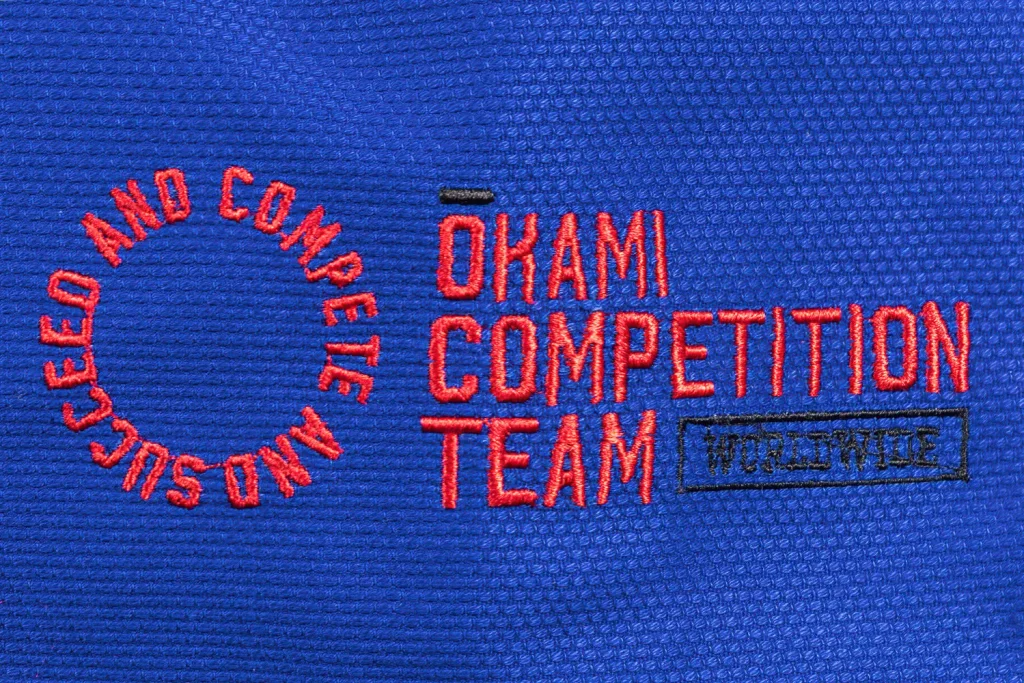 Der Gi verfügt über hochwertig aufgestickte OKAMI-Logos und Applikationen, die deinem Wettkampf-Outfit eine elegante Note und Markenstolz verleihen..