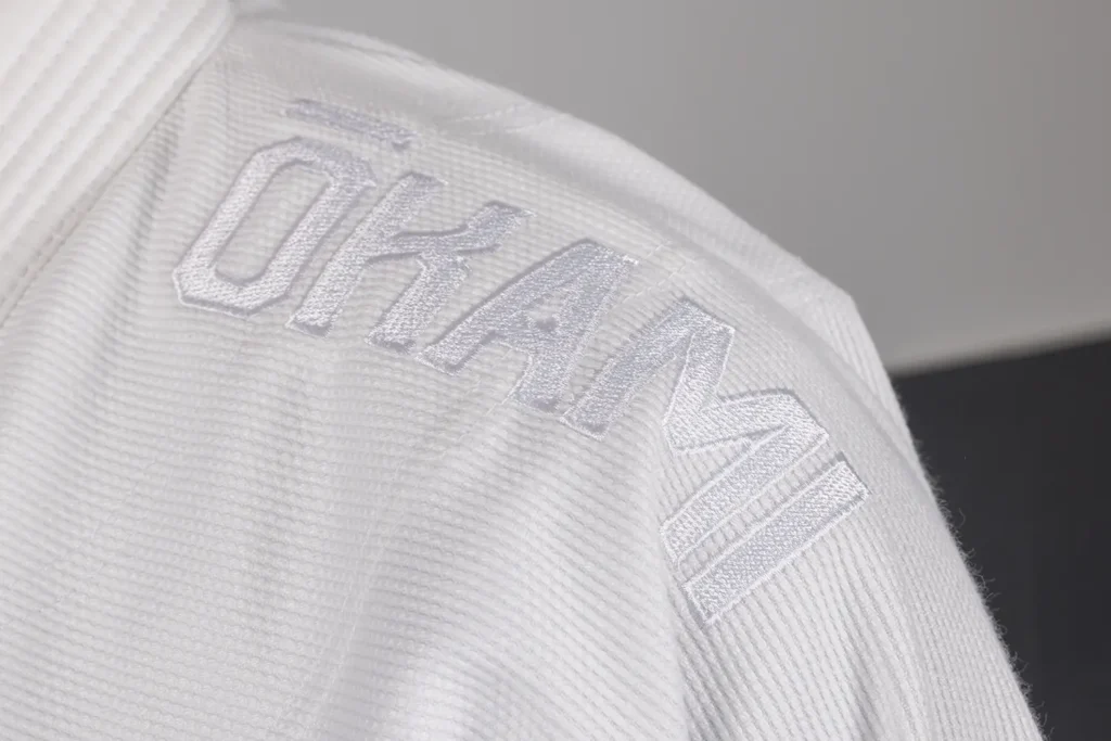 • Minimalistisches Design: Dezente OKAMI-Stickereien in Gi-Farbe auf Schulter und Hose.