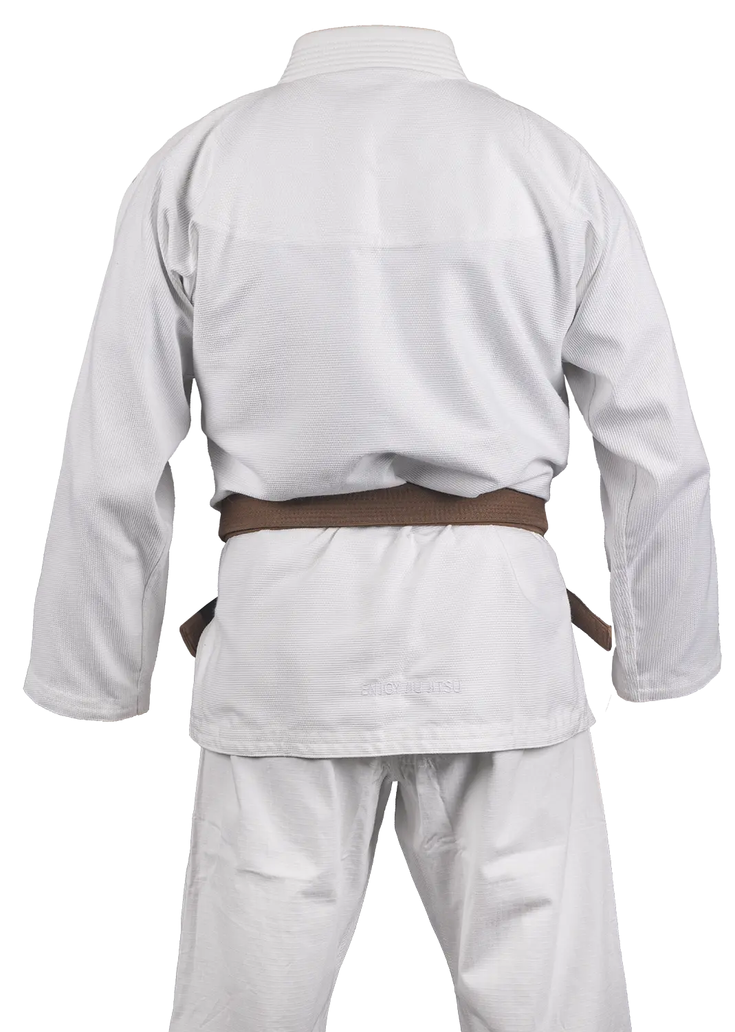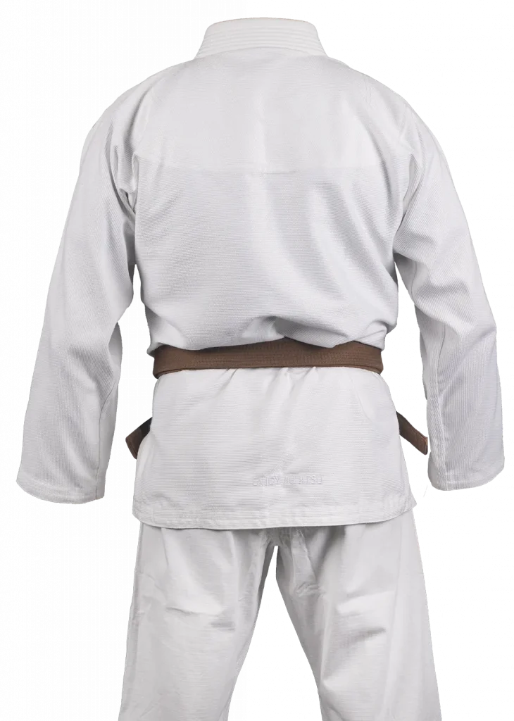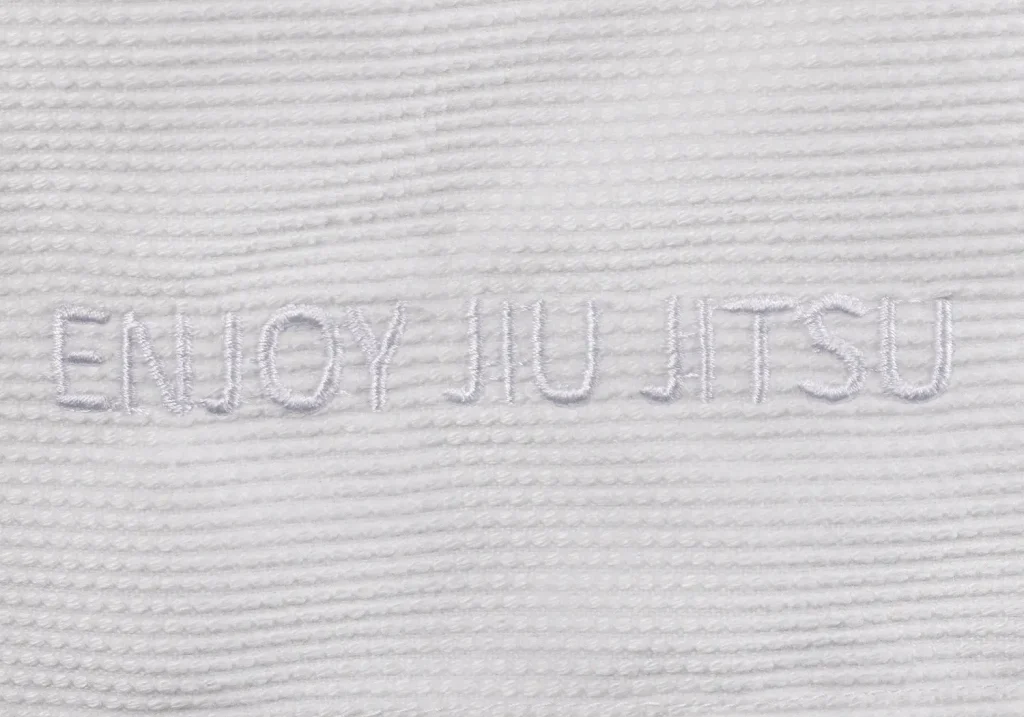 Das minimalistische Design wird durch dezente OKAMI-Stickereien in Gi-Farbe auf der Schulter und Hose ergänzt. Besonders auffällig sind die Schnürung mit OKAMI-Logos und der ENJOY JIU JITSU Stick auf der Rückseite der Jacke. Der Gi wird plastikfrei in einem praktischen Gymsack geliefert und beinhaltet einen kostenlosen weißen Gürtel – ein nachhaltiges und komplettes Paket.