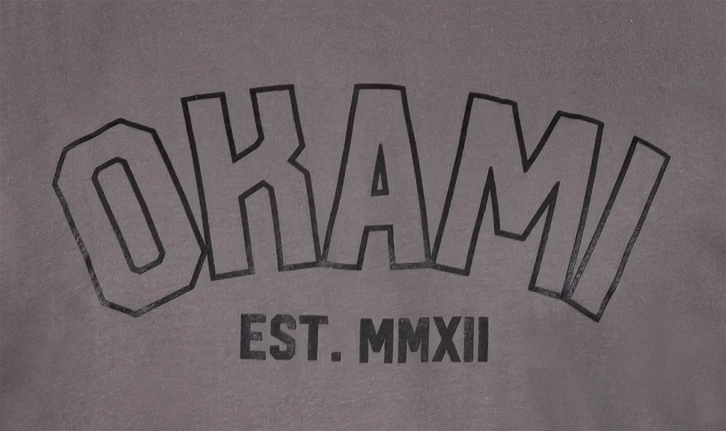 • Klassisches Collegestyle-Design mit “OKAMI EST. MMXII” Print.