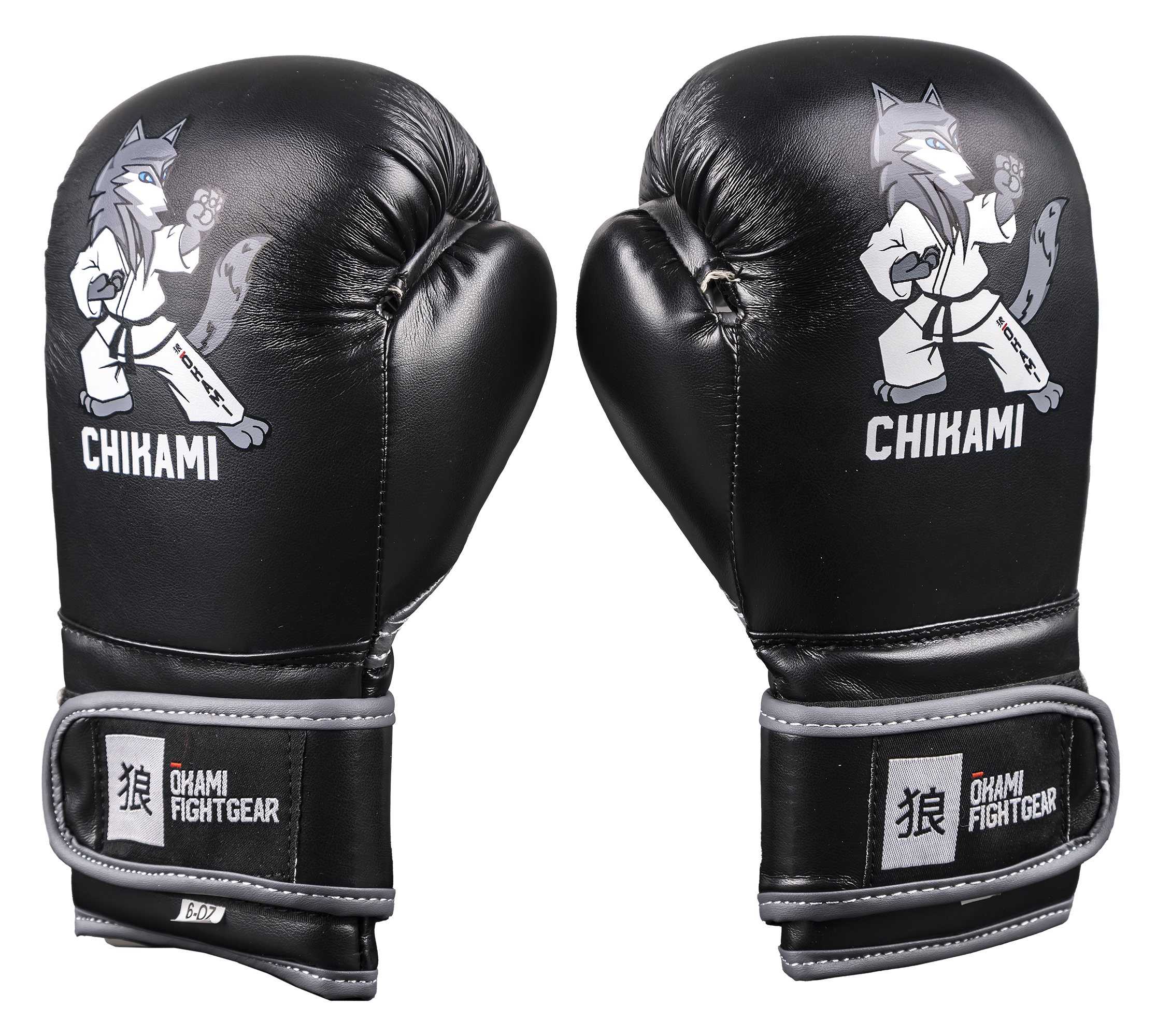 Chikami Kids Boxhandschuhe für Nachwuchstalente und (Kick)Boxenthusiasten, bestechen durch ein stylisches Design. Der OKAMI Kids Wolf “Chikami” (japan. Chisen OKAMI = junger Wolf) wird auf der Rückseite der Handschuhe in Szene gesetzt. Kids Gloves der Chikami Serie eignen sich für Einsteiger und fortgeschrittene Nachwuchstalente im Kickboxen und Muay Thai.