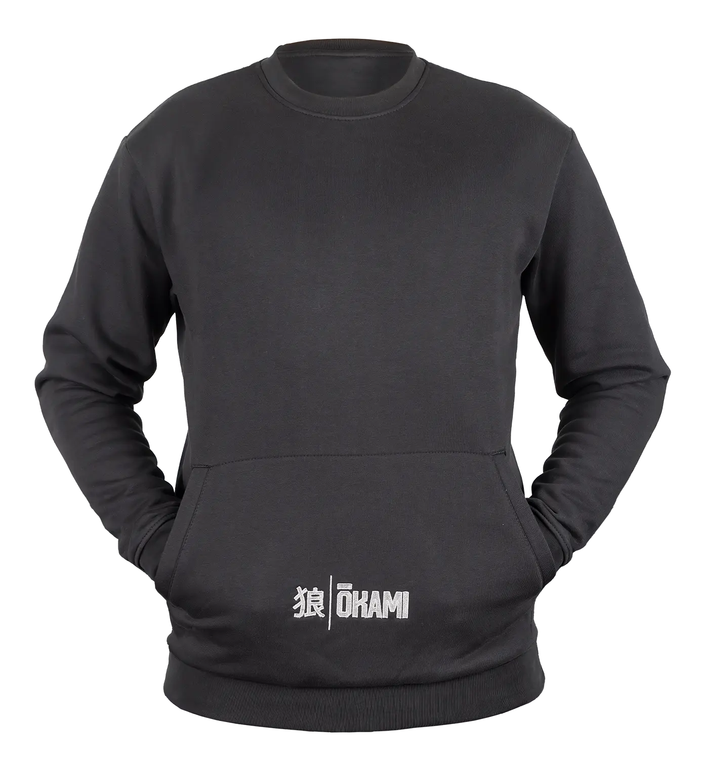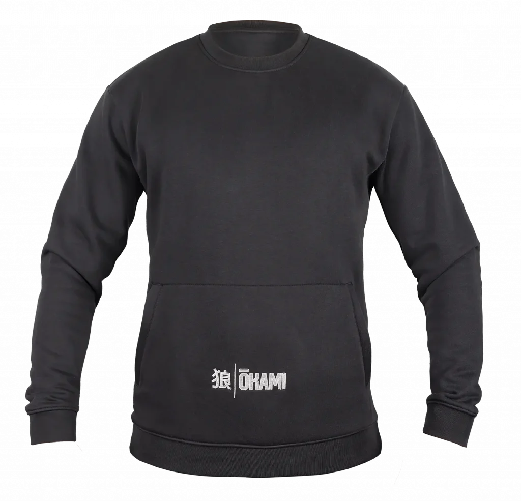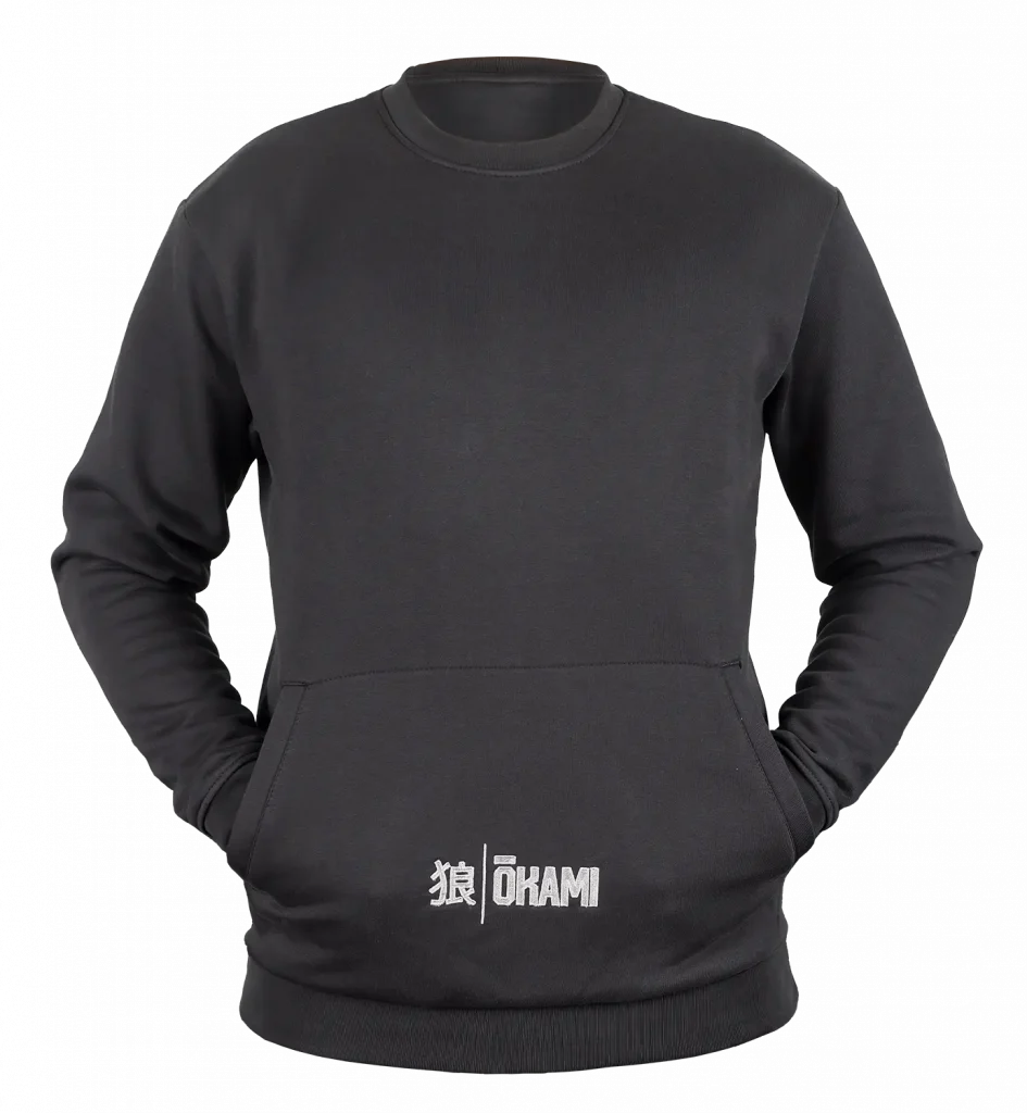 Optisch überzeugt das Design durch klare Akzente: Das gestickte OKAMI-Logo auf der linken Brust steht für Qualität und Zugehörigkeit zur Community, während das aufgestickte Kanji-Symbol dem Sweatshirt einen markanten und zugleich stilvollen Charakter verleiht.