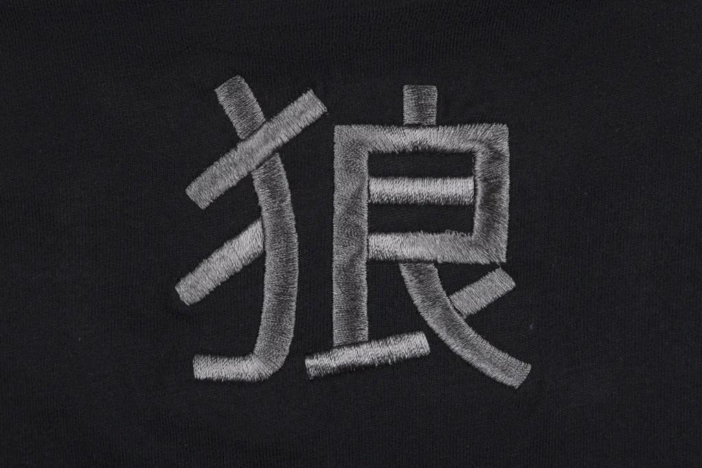 • Japanisches Kanji für „Okami“ als edle Stickerei unter dem Nacken, mit einem schützenden Stoffeinsatz, der sich im Laufe der Zeit sanft auswäscht.