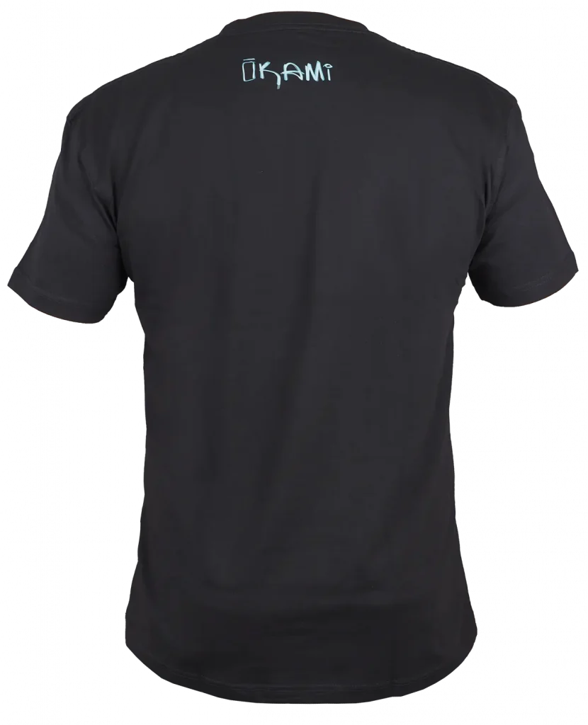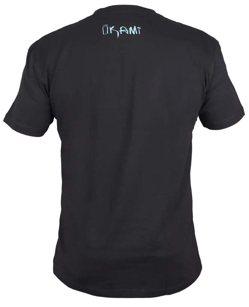 • Gedrucktes OKAMI-Logo auf der Rückseite im Nackenbereich, das die Farben des Frontprints aufgreift.