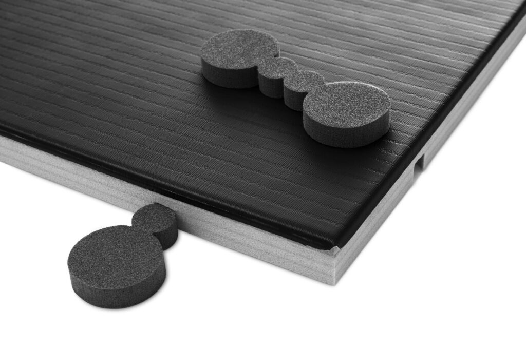 Hergestellt aus geschlossenzelligem, vernetztem Polyethylenschaum und versehen mit einer langlebigen, rutschfesten PVC-Oberfläche in Reisstrohprägung, kombiniert die Matte Langlebigkeit, Hygiene und Funktionalität. Die abgerundeten Ecken und Kanten erhöhen die Sicherheit zusätzlich.