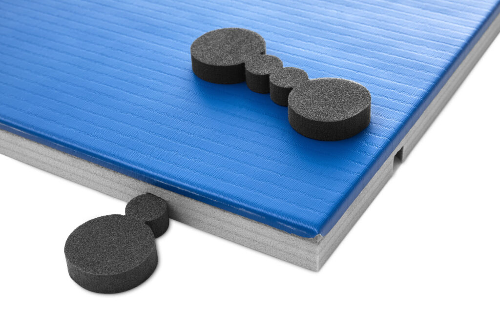 Die I-TIS Competition Matte überzeugt durch ihr patentiertes Verbindungssystem Invisible – Trocellen Interlocking System (I-TIS), das eine schnelle, werkzeuglose Verlegung ermöglicht – ganz ohne Holzrahmen. Die Matten lassen sich damit auch auf großen Flächen problemlos und bündig verbinden, reinigen und bei Bedarf neu anordnen. Zum Lieferumfang gehören 6 unterseitige Steckverbinder, mit denen die Matte sicher mit weiteren I-TIS Modulen verbunden wird.