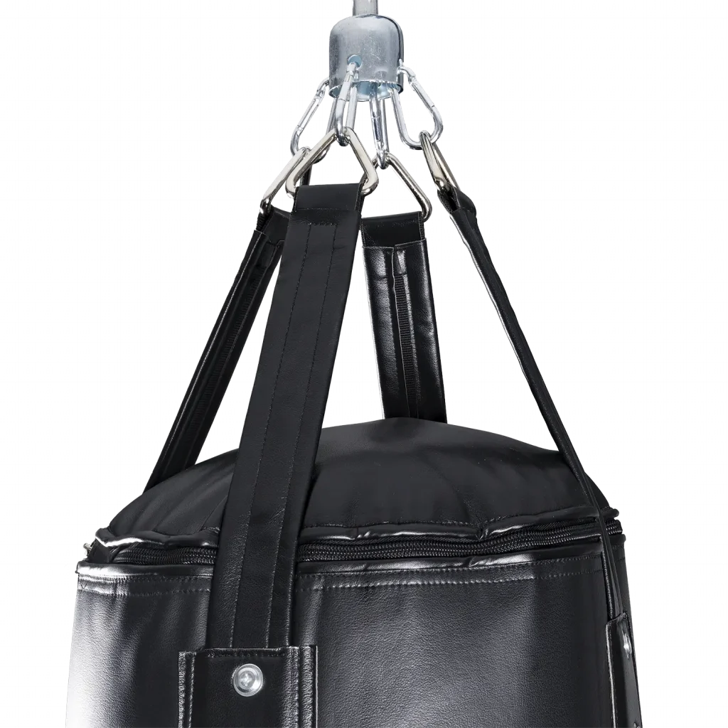 Der strapazierfähige Kunstlederbezug, die hochwertige Füllung aus geschreddertem Textil (ca. 54 kg) und die verstärkten Aufhängelaschen mit robuster Verschraubung garantieren Langlebigkeit und Belastbarkeit – auch bei täglichem Gebrauch im Studio. Ein mitgelieferter Drehwirbel sorgt für Bewegungsfreiheit bei jeder Trainingseinheit.