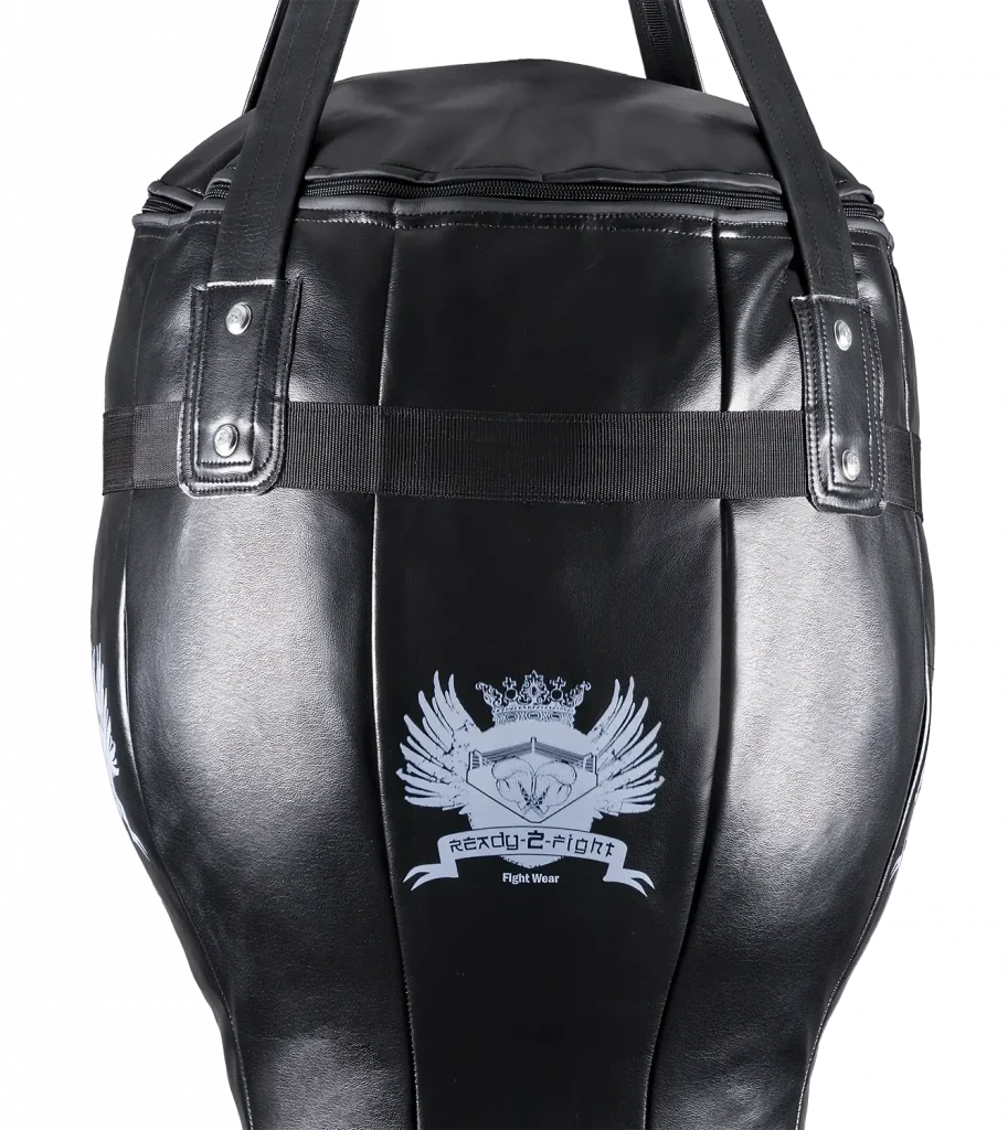 Der R2F Anklebag 120 cm bietet die perfekte Lösung für gezieltes Schlag- und Kicktraining bei begrenztem Platzangebot. Mit einem Gewicht von ca. 47 kg und einer speziell geformten Silhouette (28 cm unten, 58 cm Uppercut-Zone) ist dieser Studio-Boxsack optimal geeignet für Low Kicks, Knietechniken und Uppercuts.